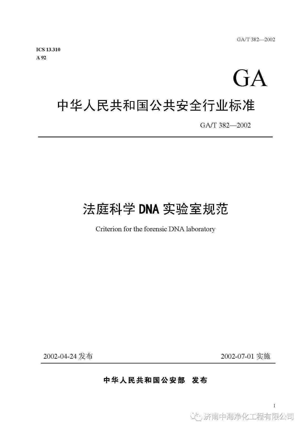 GA/T 382-2002 《法庭科学DNA实验室规范》